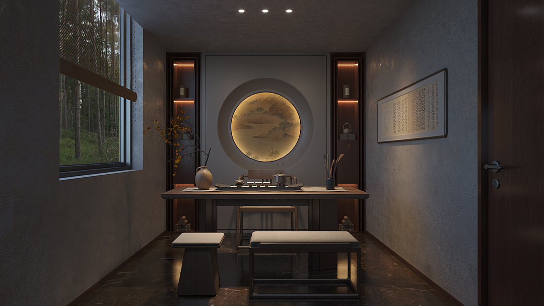 從定制青瓷茶具陳列柜到手繪山水墻面,再到智能新風系統與地暖設備,既保留傳統符號,又注入現代科技提升舒適度。