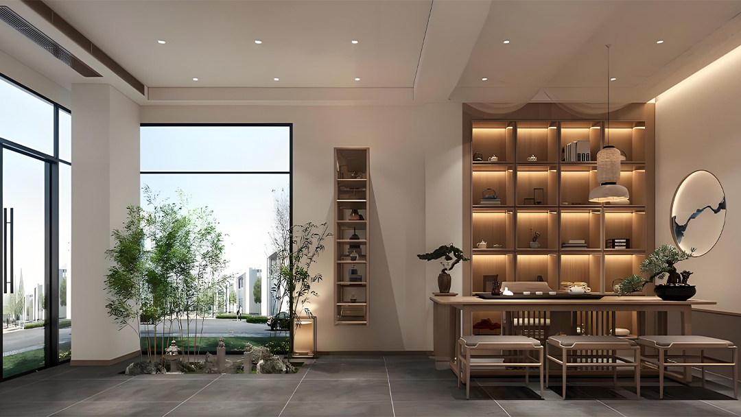 采用無主燈設(shè)計、隱藏式收納系統(tǒng)及模塊化家具布局,最大化利用空間;通過低飽和度色調(diào)搭配自然材質(zhì),營造寧靜雅致的氛圍。 - 科技賦能傳統(tǒng)場景