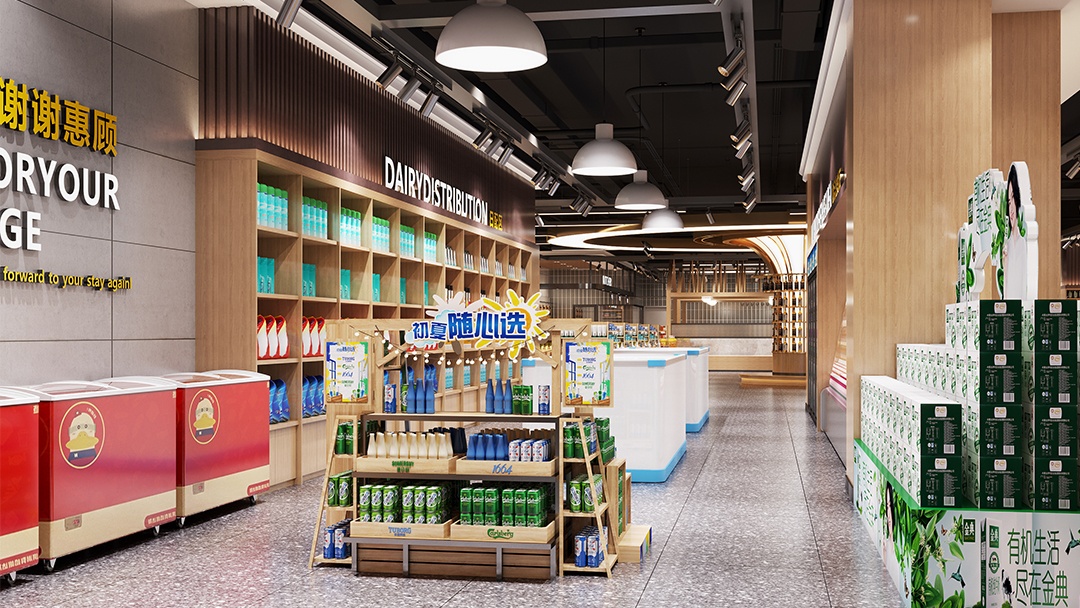 杭州進口食品超市裝修設計,踏入店內(nèi),一盞盞射燈精準聚焦,柔和而明亮的光線灑在食品上,凸顯其精致包裝與誘人色澤,仿佛在訴說著來自世界各地的美味故事。裸頂噴黑的設計獨具匠心,打破傳統(tǒng)天花板的束縛,營造出工業(yè)風與現(xiàn)代感交織的獨特氛圍,讓空間更顯開闊大氣。原木展示貨架,錯落有致地分布其中,天然的木紋質(zhì)感,傳遞著質(zhì)樸與溫暖,為進口食品增添了一份自然的親和力。咖色元素巧妙點綴,從貨架的裝飾線條到軟裝細節(jié),咖色的沉穩(wěn)優(yōu)雅與原木的質(zhì)樸相得益彰,提升了整體的格調(diào)。在這里,購物成為一場視覺與味覺體驗。