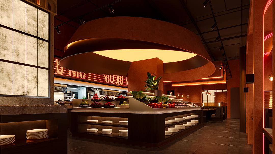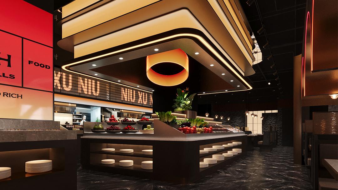 商場(chǎng)火鍋店需平衡人流量與用餐舒適度,博妍裝飾通過(guò) “功能 + 美學(xué)” 融合給出方案:針對(duì)商場(chǎng)年輕客群,突破傳統(tǒng)川味火鍋的深色系局限,采用 “新中式輕奢” 風(fēng)格,以金屬線(xiàn)條搭配水墨元素,既顯時(shí)尚又不失文化底蘊(yùn);優(yōu)化布局提升坪效,設(shè)置靈活卡座與半開(kāi)放包廂滿(mǎn)足不同需求,同時(shí)保證通道寬敞便于翻臺(tái);智能系統(tǒng)實(shí)現(xiàn)燈光、空調(diào)分區(qū)控制,節(jié)能降耗契合商場(chǎng)運(yùn)營(yíng)要求