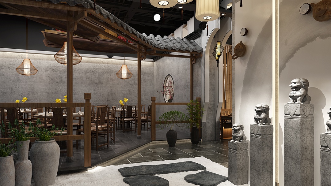杭州新中式快餐店裝修設(shè)計(jì)中,我們精心挑選青磚、瓦片、竹編、石雕等杭州特色材料。青磚與瓦片鋪就墻面地面,古樸厚重,似在訴說杭州千年的歷史故事;竹編元素巧妙融入隔斷、燈具,輕盈靈動(dòng),為空間增添自然清新之感;石雕擺件點(diǎn)綴其間,或?yàn)榛B,或?yàn)樯剿M顯江南的細(xì)膩雅致。這些地域特色材料相互交織,不僅強(qiáng)化了餐廳的地域感,更營造出一種寧靜、舒適的用餐氛圍。顧客踏入店內(nèi),仿佛穿越時(shí)空,置身于杭州的舊時(shí)光里,在享受美食的同時(shí),感受地域文化的獨(dú)特魅力,開啟一場味蕾與文化的體驗(yàn)。