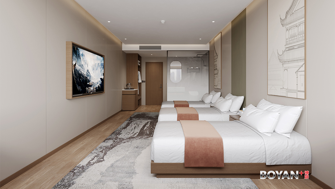 杭州主題套房酒店設計裝修,本案以“一室一宇宙”為核心概念,打造八大沉浸式敘事場景套房。其中“茶山秘境”套房復刻龍井梯田景觀,植入霧化玻璃與光影模擬晨霧山嵐;“宋韻書閣”套房以立體藏書墻面搭配可移動閣樓臥榻,營造文人棲居意趣。每間套房均整合智能情境控制系統,一鍵切換氛圍照明、音效與香氛,并隱藏式集成拍攝輔助燈光,完美兼顧深度體驗與社交媒體傳播需求,實現主題酒店差異化競爭優(yōu)勢。