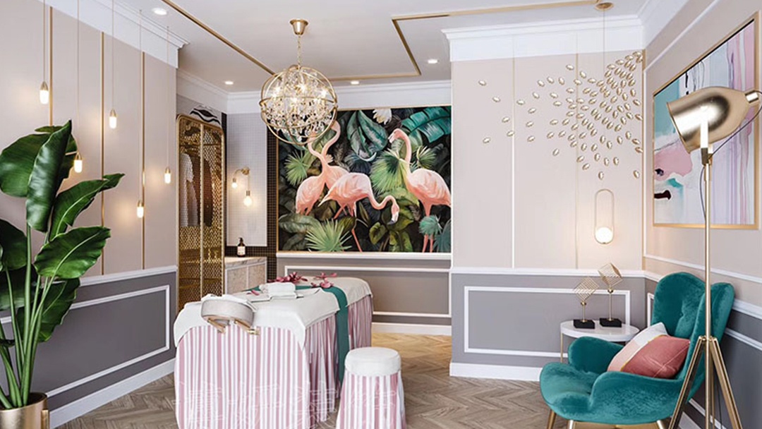 在杭州,這座兼具時尚基因與自然靈氣的城市,我們以INS風(fēng)美學(xué)為靈感,將低飽和度粉色作為空間主調(diào),搭配生機(jī)盎然的綠植點(diǎn)綴,打造一處治愈感與高級感并存的指尖藝術(shù)空間。墻面,采用柔霧粉藝術(shù)涂料,搭配啞光白與淺灰家具,營造溫柔而不甜膩的視覺層次;弧形沙發(fā)、吊燈與幾何鏡面裝置,強(qiáng)化空間的輕盈感與現(xiàn)代趣味。綠植,成為空間呼吸的靈魂——從入口處的龜背竹墻到護(hù)理區(qū)的蕨類微景觀,再到窗邊的琴葉榕列陣,讓自然氣息滲透每個角落。智能補(bǔ)光美甲臺與無主燈設(shè)計(jì)結(jié)合,確保光線柔和均勻,讓每一次指尖創(chuàng)作都成為享受。在這里,杭州的精致與INS風(fēng)的松弛完美交融,為都市女性提供一處逃離喧囂、沉浸美學(xué)的治愈驛站。