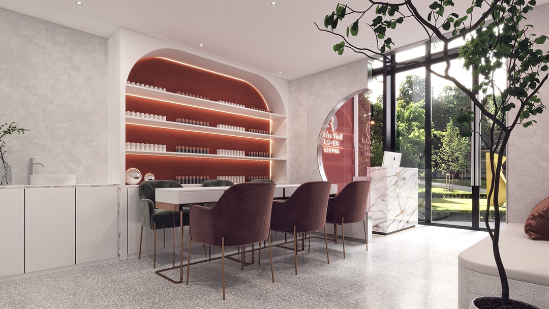 杭州韓系美甲店裝修設(shè)計(jì),以熾烈紅韻,勾勒精致美學(xué)空間;打破常規(guī),詮釋熱情與優(yōu)雅的碰撞美學(xué)。設(shè)計(jì),以“熾烈與精致”為核心,選用深紅、酒紅等層次豐富的紅色系墻面,搭配金屬線條勾勒輪廓,營(yíng)造出高級(jí)感與視覺張力并存的氛圍,瞬間抓住顧客目光??臻g焦點(diǎn),落于定制大理石臺(tái)面——潔白底色上流淌著天然灰紋,冷冽質(zhì)感與紅色背景形成鮮明對(duì)比,既凸顯美甲操作的精致感,又便于清潔維護(hù)。開放式美甲區(qū),以紅色高腳椅搭配智能補(bǔ)光鏡,滿足社交分享需求;私密包間,則通過紅色絨簾與暖光燈帶,打造沉浸式變美體驗(yàn)。細(xì)節(jié)處融入韓式簡(jiǎn)約裝飾,如幾何造型擺件、抽象藝術(shù)畫,讓空間在熱烈中不失格調(diào),成為杭州美甲界的潮流新地標(biāo)。