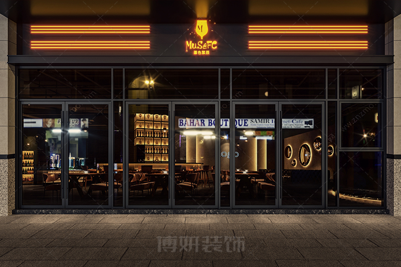 酒吧裝修設計中,門面裝修尤為重要。作為面向外界的名片,一個氣派有個性的門面,能夠吸引更多的目光。類似于酒吧這樣的娛樂消費場所來說,對其門面進行裝飾設計的過程中,要格外注意門面色彩設計。對其造型效果起著重要的作用。運用門面裝飾色彩的合理布局與搭配,吸引更多的目光和注意力。