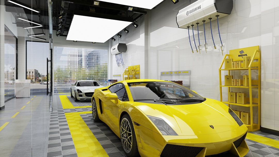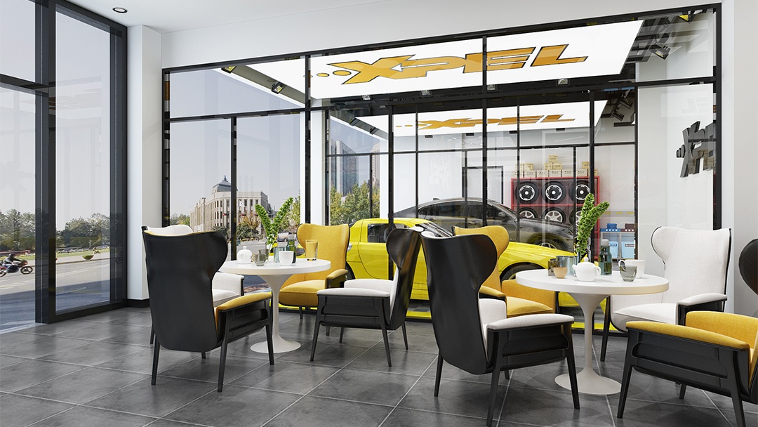 杭州汽車貼膜專營店裝修設計,打造沉浸式貼膜體驗空間。入口設動態(tài)色溫光柱陣列,呈現(xiàn)200+膜料在不同光照下的色彩變化。施工區(qū)采用十萬級無塵標準,配備垂吊式膜料架與智能裁膜工作臺,墻面嵌入紫外線強度監(jiān)測屏??蛻艨赏ㄟ^互動色墻進行虛擬改色預覽,定制區(qū)設材質(zhì)顯微鏡與耐久度測試儀。整體以科技白與金屬灰為基調(diào),將專業(yè)工藝轉(zhuǎn)化為可感知的視覺敘事。