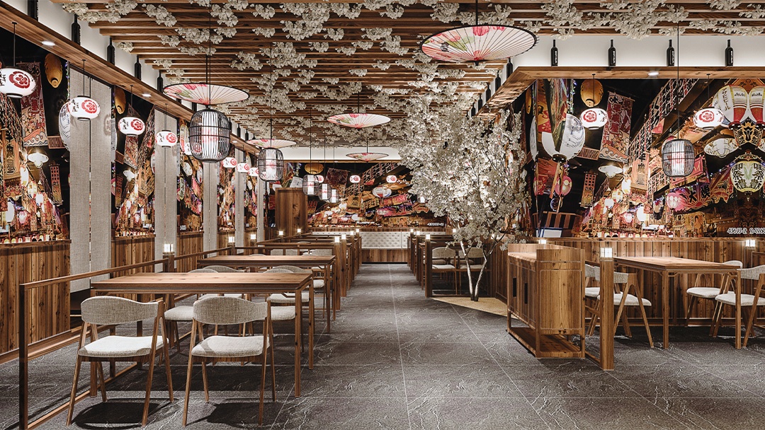 • 材質(zhì)與氛圍:選用原木、竹編、素色涂料等天然材料,搭配暖黃燈光與庭院枯山水造景,營(yíng)造靜謐雅致的用餐環(huán)境。