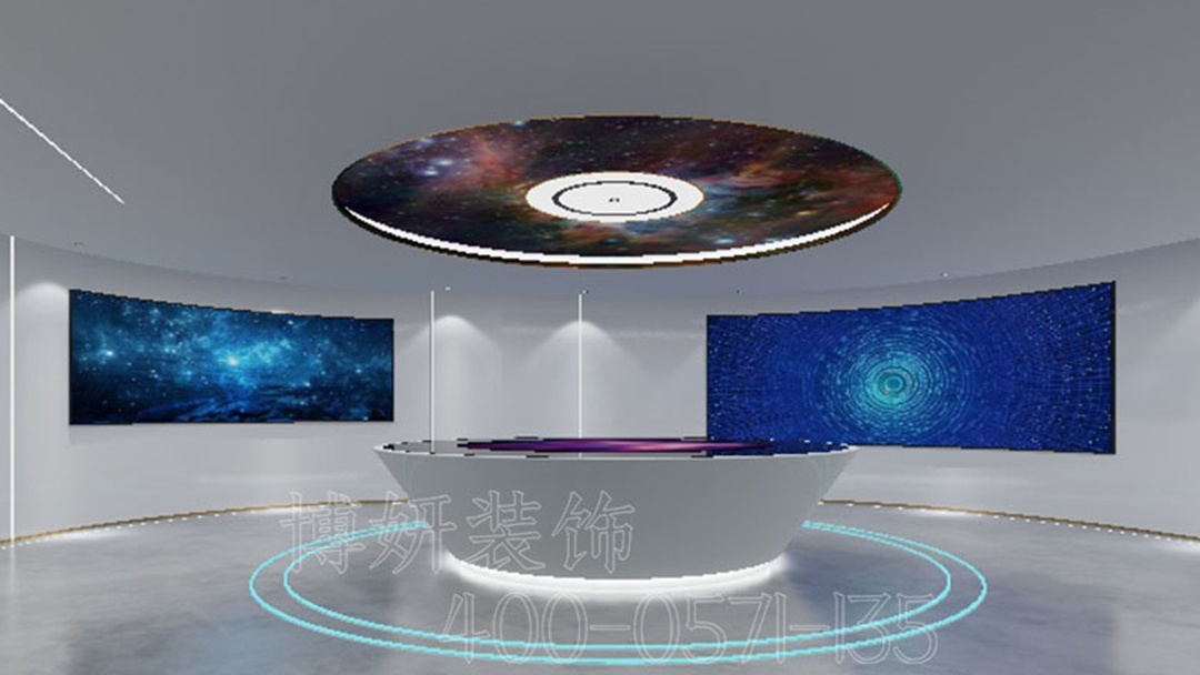杭州數(shù)字多媒體展廳裝修設(shè)計(jì),以獨(dú)特設(shè)計(jì)展現(xiàn)非凡魅力。整體空間,以灰白色為主色調(diào),奠定簡(jiǎn)潔、大氣的基調(diào),營(yíng)造出專業(yè)且高端的氛圍,讓參觀者甫一進(jìn)入,便感受到沉穩(wěn)與莊重。