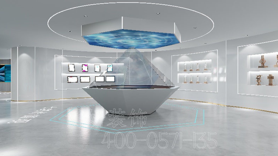 多媒體設(shè)備與空間設(shè)計(jì)完美融合,通過互動(dòng)展示、沉浸式體驗(yàn)等形式,讓參觀者深度感受數(shù)字科技的魅力。杭州數(shù)字多媒體展廳,以灰白藍(lán)的色彩搭配與線性燈帶的巧妙運(yùn)用,打造出一個(gè)大氣、前沿且極具吸引力的科技展示空間。