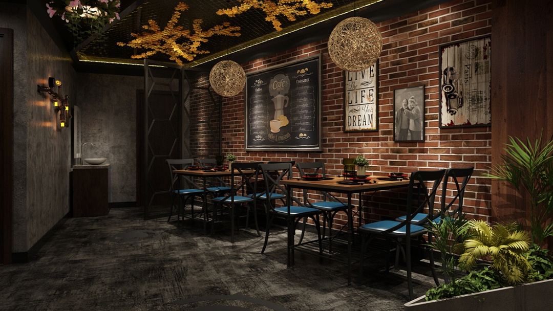 杭州復(fù)古工業(yè)風(fēng)餐飲店裝修設(shè)計中,為凸顯店鋪的氛圍感,我們使用灰色水泥墻面,展示水泥的自然紋理,以保持原始質(zhì)感,為店鋪增添一份獨特的個性。同時,在一部分墻面使用紅磚,與灰色水泥墻面形成對比,為空間增添一抹溫暖的色彩。其質(zhì)感、顏色與店鋪的熱烈氛圍相得益彰。此外,我們還懸掛了一些復(fù)古風(fēng)格的掛畫或照片,以增強(qiáng)空間的故事感。這些元素,不僅美觀實用,還能給顧客帶來一種復(fù)古,而溫馨的感覺。