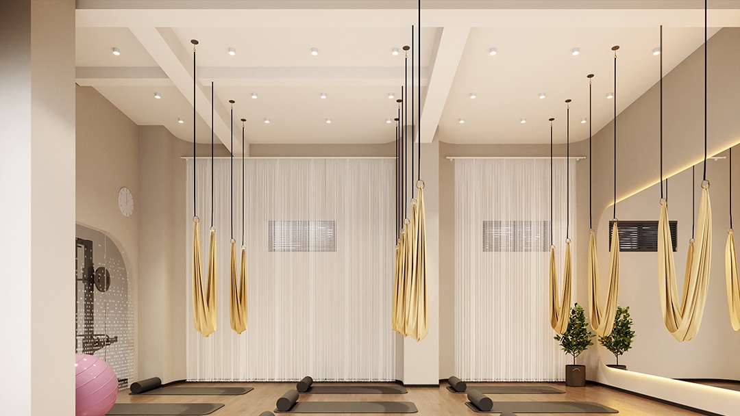 杭州輕奢風(fēng)瑜伽館裝修設(shè)計(jì),本案以「流動的靜奢」為核心理念,空間以低飽和米灰與淺香檳色為主調(diào),弧形墻面嵌入金屬細(xì)線勾勒精致輪廓。定制透光云石接待臺與懸浮式更衣柜系統(tǒng),提升輕盈質(zhì)感。主練習(xí)區(qū)鋪設(shè)天然亞麻地墊,頂部懸掛漸變琉璃吊燈,可隨自然光變化呈現(xiàn)柔和光暈。重點(diǎn)打造「聲景冥想室」,采用星空頂與隱藏式環(huán)繞音響,結(jié)合植物香氛擴(kuò)散系統(tǒng),實(shí)現(xiàn)視覺、聽覺與嗅覺的多維療愈體驗(yàn)。
