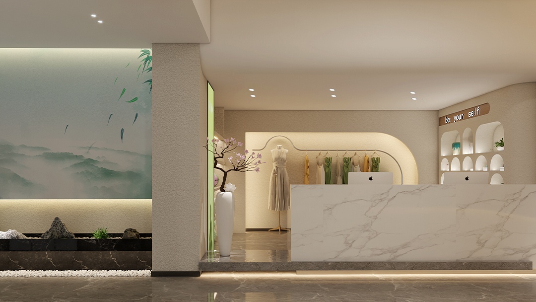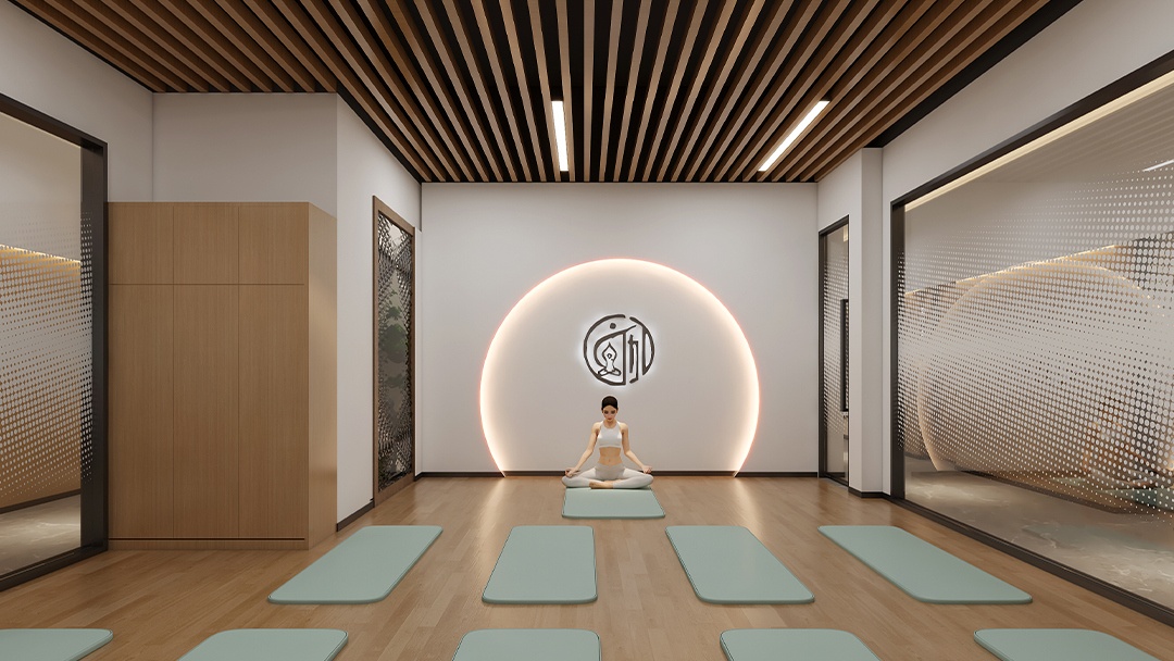 杭州禪意瑜伽館裝修設(shè)計,本案以「空谷回音」為意境內(nèi)核,將江南園林的借景手法引入室內(nèi)。以夯土墻面為背景,頂部開設(shè)條形天窗,隨著時辰變化在微水泥地面投下流動光斑。定制弧形竹編屏風(fēng)區(qū)隔空間,搭配枯山水白沙庭院造景。重點打造「聽雨冥想軒」——隱藏式噴霧系統(tǒng)配合仿真雨聲音頻,蒲團(tuán)下設(shè)置地暖溫控系統(tǒng)??臻g無主燈設(shè)計,僅以陶罐燈與壁龕燭光點綴,營造出靜觀內(nèi)省的東方禪修之境。