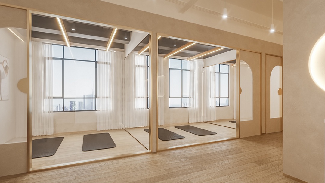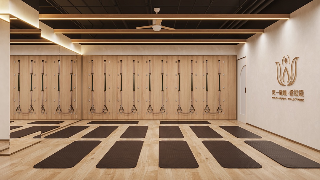 杭州簡約風普拉提館裝修設(shè)計,本案以“呼吸感空間”為核心理念,采用米白與淺灰為主調(diào),融入溫潤原木元素。墻面采用自帶肌理的環(huán)保涂料,搭配隱藏式線性光源,光線柔和漫射。器械選用統(tǒng)一低飽和色系,可移動的普拉提床與折疊椅實現(xiàn)空間彈性。重點打造“懸浮鏡面”裝置——大幅鏡子底部留空,視覺上減輕壓迫感;綠植點綴于角落,自然氣息在簡約中流動,營造出專注且松弛的練習氛圍。