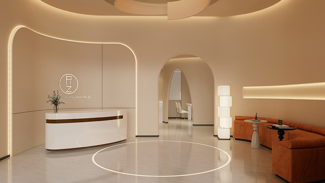 高端美容SPA的裝修設(shè)計,以細膩筆觸勾勒空間情緒。我們以暖色調(diào)為基底,精選米白、淺咖、琥珀金等低飽和度色彩,通過墻面、織物與燈光的層次疊加,營造出如陽光傾灑般的溫柔包裹感,讓每一位踏入者瞬間卸下疲憊,沉浸于溫暖而私密的療愈氛圍??臻g布局上,弧形隔斷與流線型家具弱化棱角,搭配天然胡桃木飾面,傳遞低調(diào)的奢華質(zhì)感。智能調(diào)光系統(tǒng)與隱藏式燈帶交織出柔和光影,輔以香氛與自然音效,打造多維感官體驗。從接待區(qū)到護理室,每一處細節(jié)均以“暖”為引,讓高端不止于表面,更化作觸手可及的身心呵護。