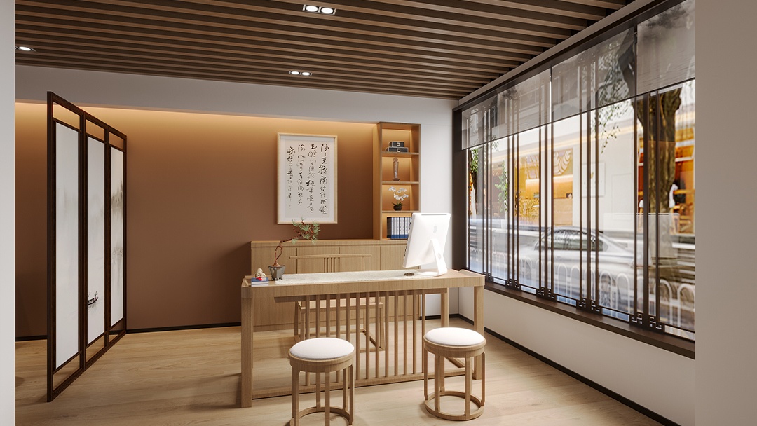 杭州社區(qū)便民中醫(yī)館裝修設(shè)計(jì),本案以“親和與可達(dá)”為核心,營(yíng)造如鄰里客廳般的溫馨就診環(huán)境??臻g以淺原木與暖白色調(diào)為主,入口設(shè)開放式咨詢臺(tái)與自助查詢屏,降低傳統(tǒng)醫(yī)館的疏離感。候診區(qū)結(jié)合階梯式書架與社區(qū)健康宣傳欄,座椅靈活組合便于交流。診療室采用磨砂玻璃隔斷,兼顧私密性與通透感。重點(diǎn)打造“藥香體驗(yàn)角”——展示常用草本標(biāo)本與代茶飲配方,整體以無(wú)障礙設(shè)計(jì)貫通動(dòng)線,構(gòu)建親切、明亮、功能復(fù)合的社區(qū)健康驛站。